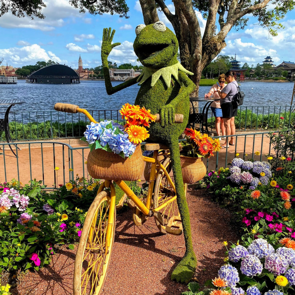 - Epcot International Flower and Garden Festival (Begins Feb 28th. Typically ends in June): This absolutely stunning festival transforms Epcot into a flowering delight with vibrant displays, horticultural exhibits, captivating character topiaries and delicious outdoor kitchens. It seems that Disney touches every piece of the park for this festival with beautiful flowers and living art.
