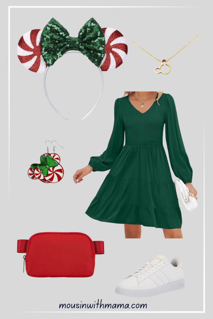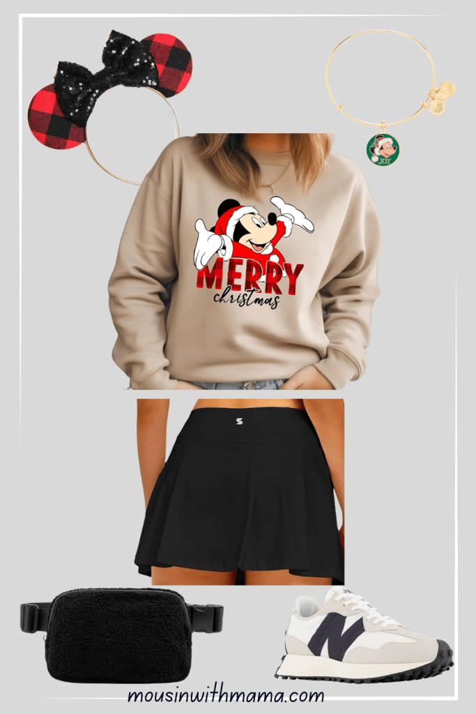 Since Disney World involves a lot of walking, comfortable shoes are a must! Sneakers or cushioned walking shoes are the best choices. If you want to add a festive touch, consider sneakers with holiday prints or even red and green colors. Just make sure they’re broken in and comfortable enough to wear all day.